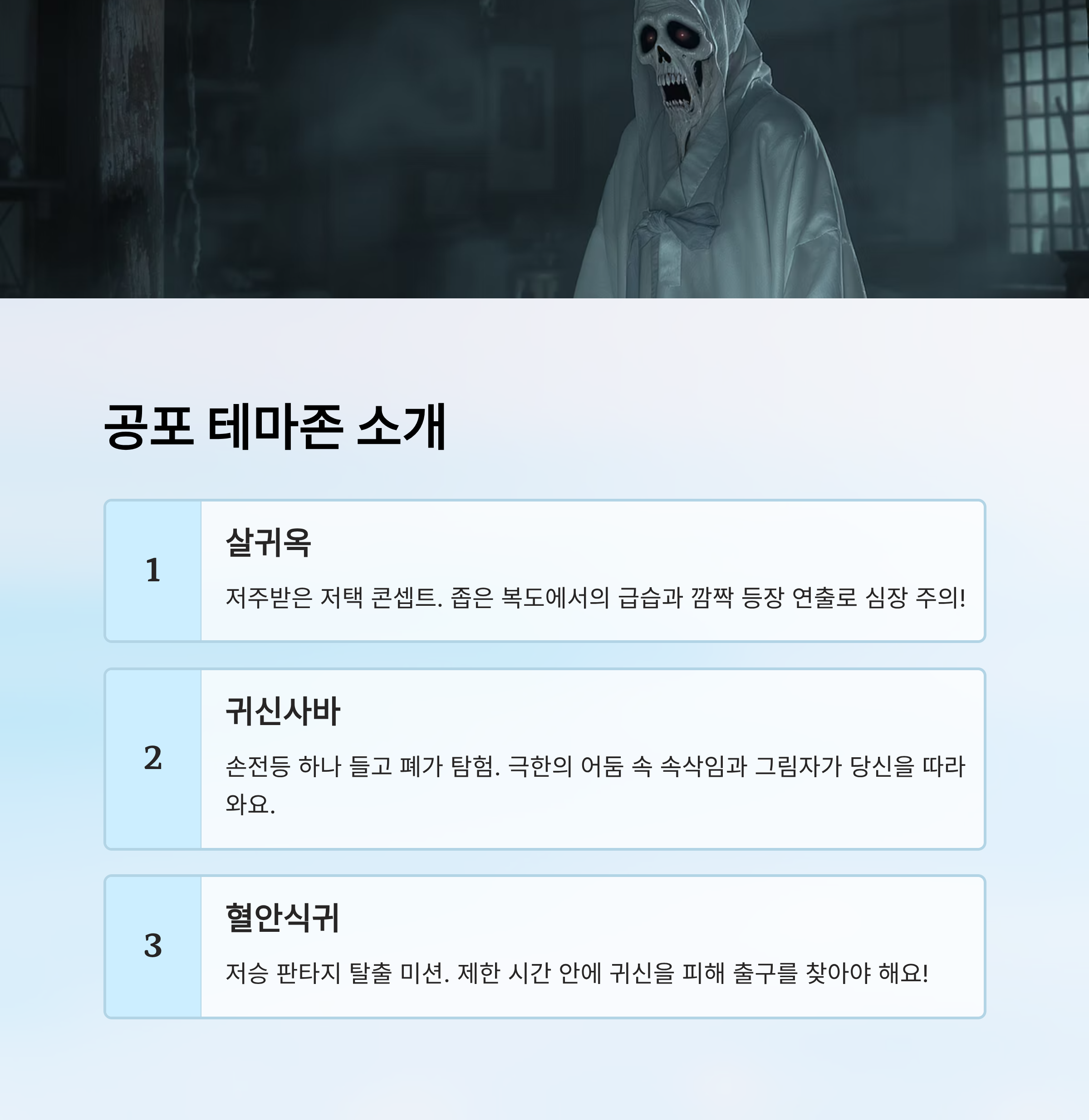 ☠️ 공포 테마존 비교표