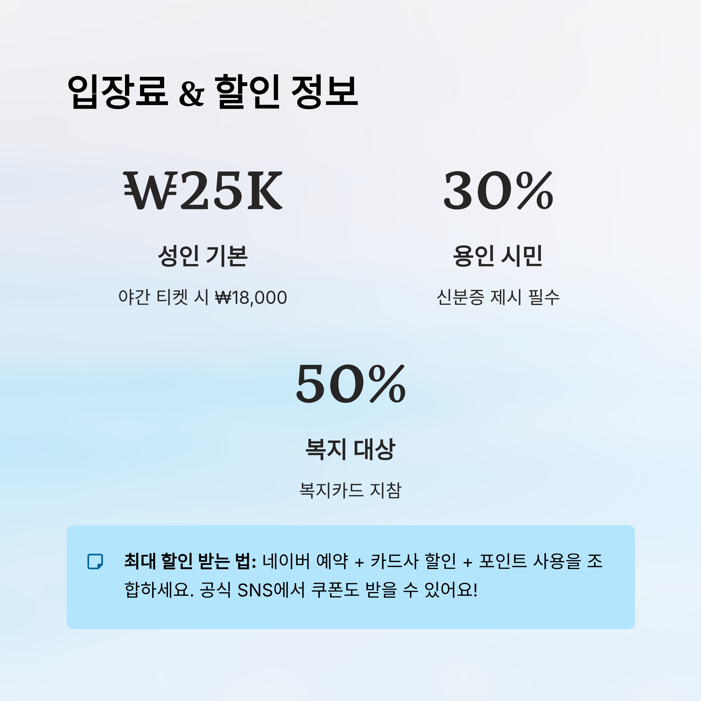 🎟️ 2025년 기준 입장료 및 할인 요약표
