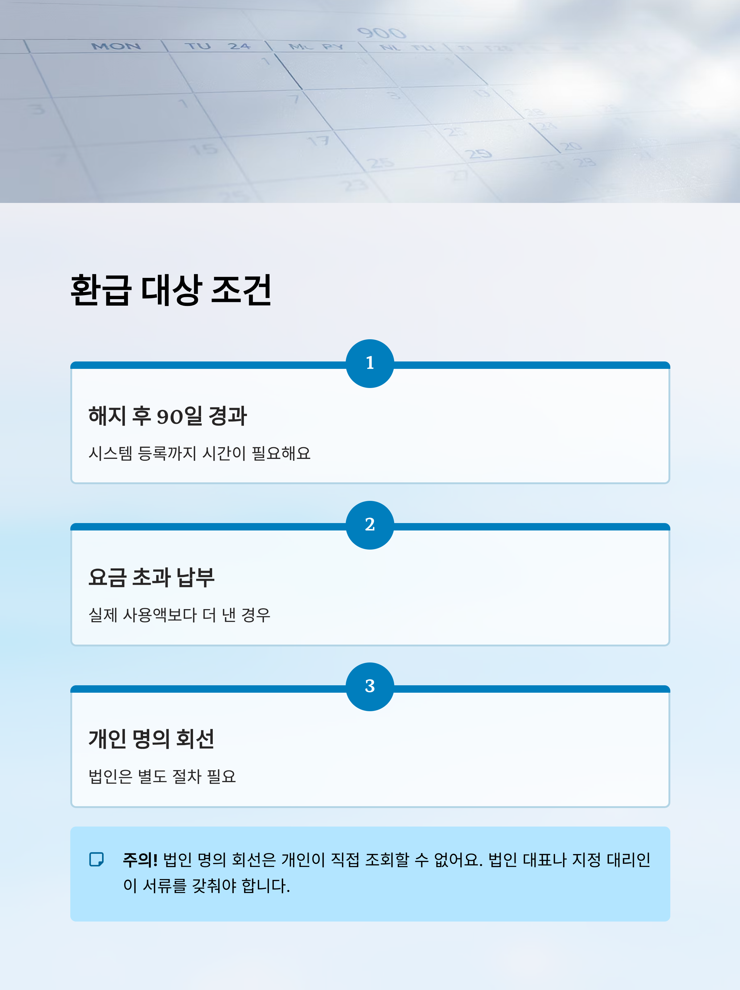 온라인 환급 신청이 가능한 경우도 있지만, 일부 조건에 해당되면 고객센터나 대면 신청이 필요할 수도 있어요. 특히 법인 명의의 경우 사업자등록증, 법인 인감증명서, 대표자 신분증이 준비되어야 하니 미리 확인이 중요해요.